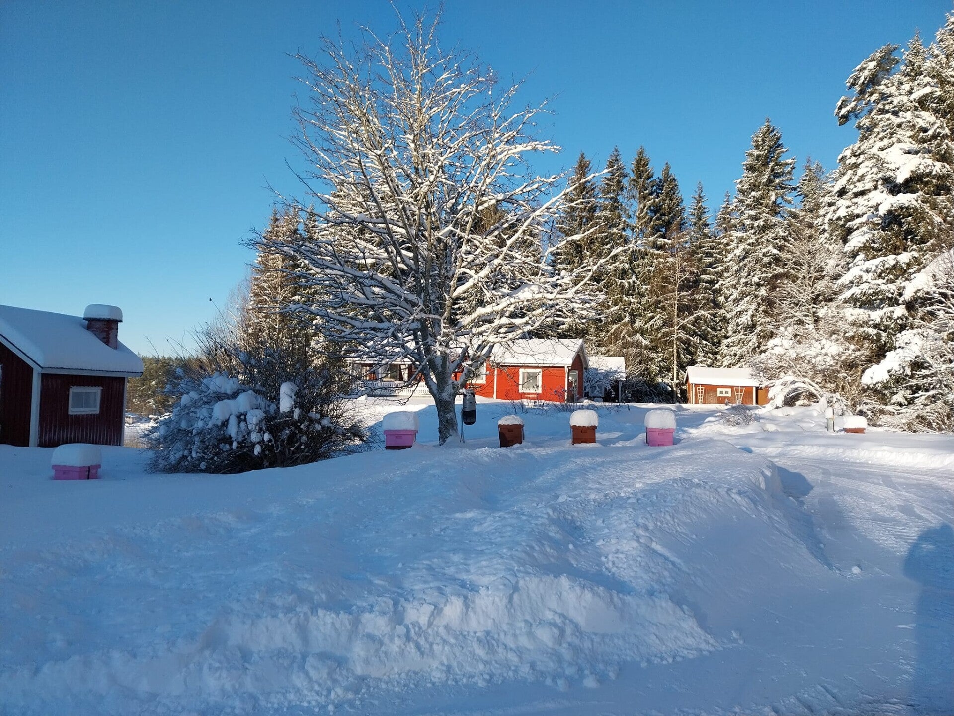 Våra bin får i princip ingen socker. Endast om vi ser tidigt på våren att de inte har tillräckligt med honung kvar efter den långa vintern, gör vi vårt yttersta för att hjälpa dem att överleva
